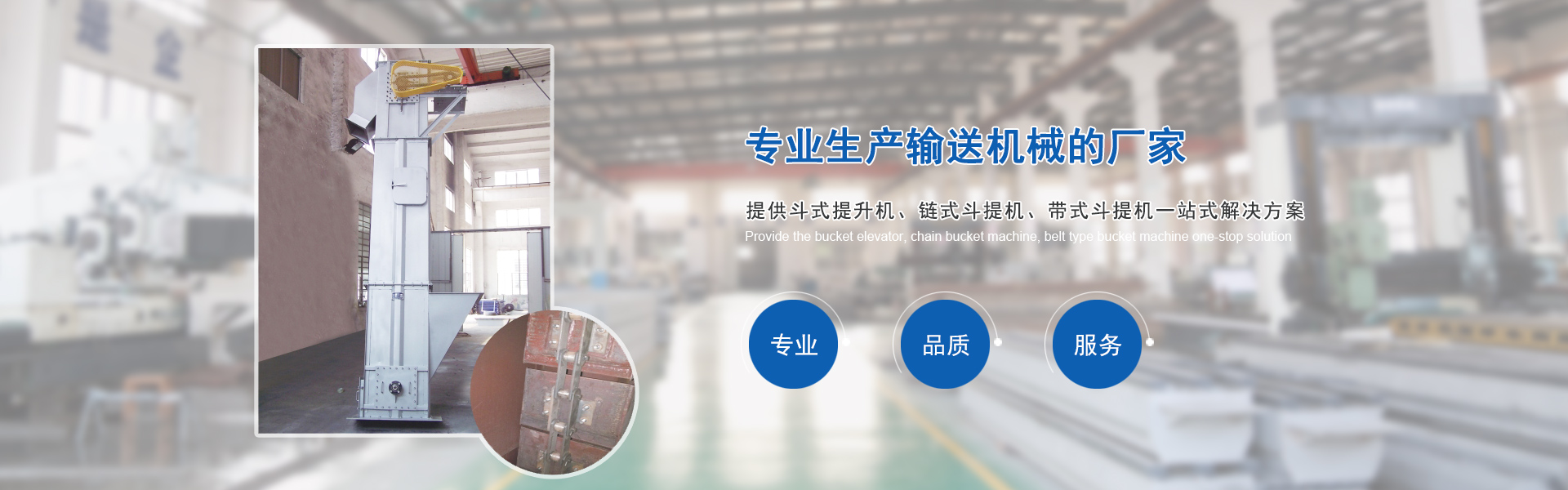 我們是專業(yè)生產(chǎn)輸送機(jī)械的廠家,主要產(chǎn)品有各種型號的斗式提升機(jī)、鏈?zhǔn)蕉诽釞C(jī)、帶式斗提機(jī)、螺旋輸送機(jī)、刮板輸送機(jī)、鏈斗輸送機(jī)、皮帶輸送機(jī)、
